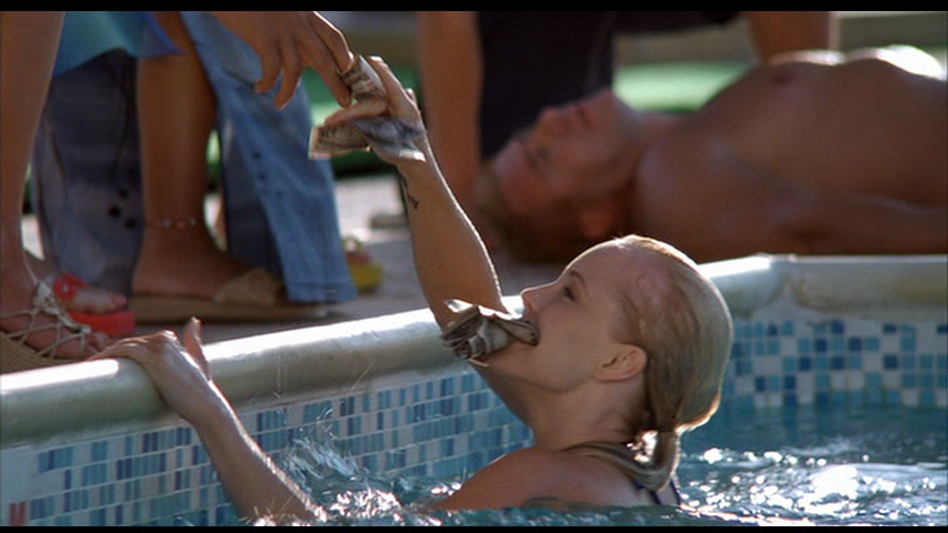 This is around when we look at the cast list. Several men are all bit character actors, the women are all former porn actresses, the rest are Bulgaria’s finest. The Carwash Sponge was in Playboy Wet & Wild VIII: Bottoms Up; so it’s no wonder she knew how to take a bath. It’s good timing to find this out as we shift to a spring break party around a hotel pool. A bunch of bros are having a breath-holding contest as a blonde lady who is obviously another former porn actress says that she has breath-holding experience from being a Navy SEAL and challenges a giant guy who is whatever the Slavic equivalent of a linebacker is. This makes him good at going without oxygen somehow. They get in the water, and after 30 seconds she takes off her swimsuit top off. This somehow causes the Bulgarian Bruiser to run out of air and swim up to the surface. So she wins through trickery…how does that help you hold your breath during a Seal mission again? People hand her cash for winning the bet and she reveals a surprising proficiency for handling wads of wet $20 bills (how did this bet work again?). Anyway, she has been summoned by the FBI dude and the next scene is them in a car in West Virginia. Despite taking a plane to get there, she hasn’t had a chance to change out of her bathing suit. She is brought to team up with the world’s greatest herpetologist. He is in possession of a giant snake, this is a world where being a reptile scientist means that you create giant freaky reptiles.